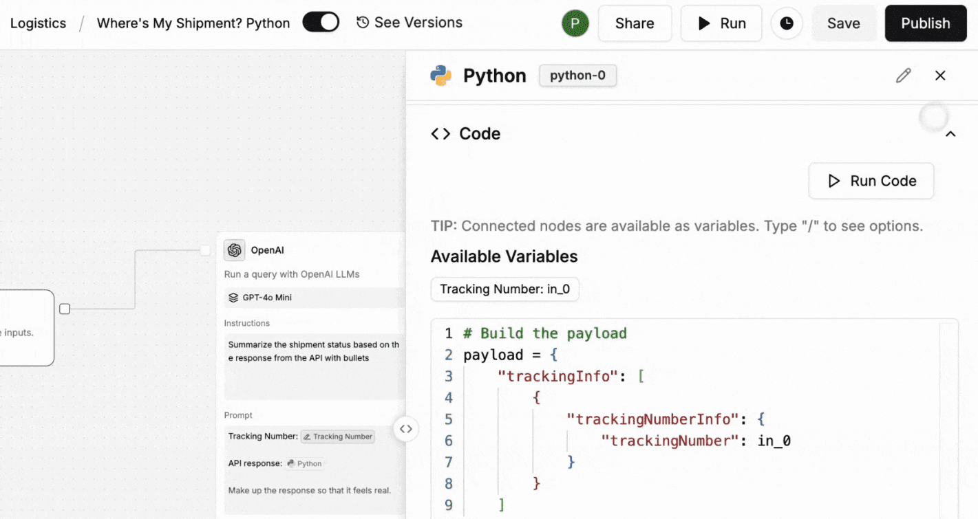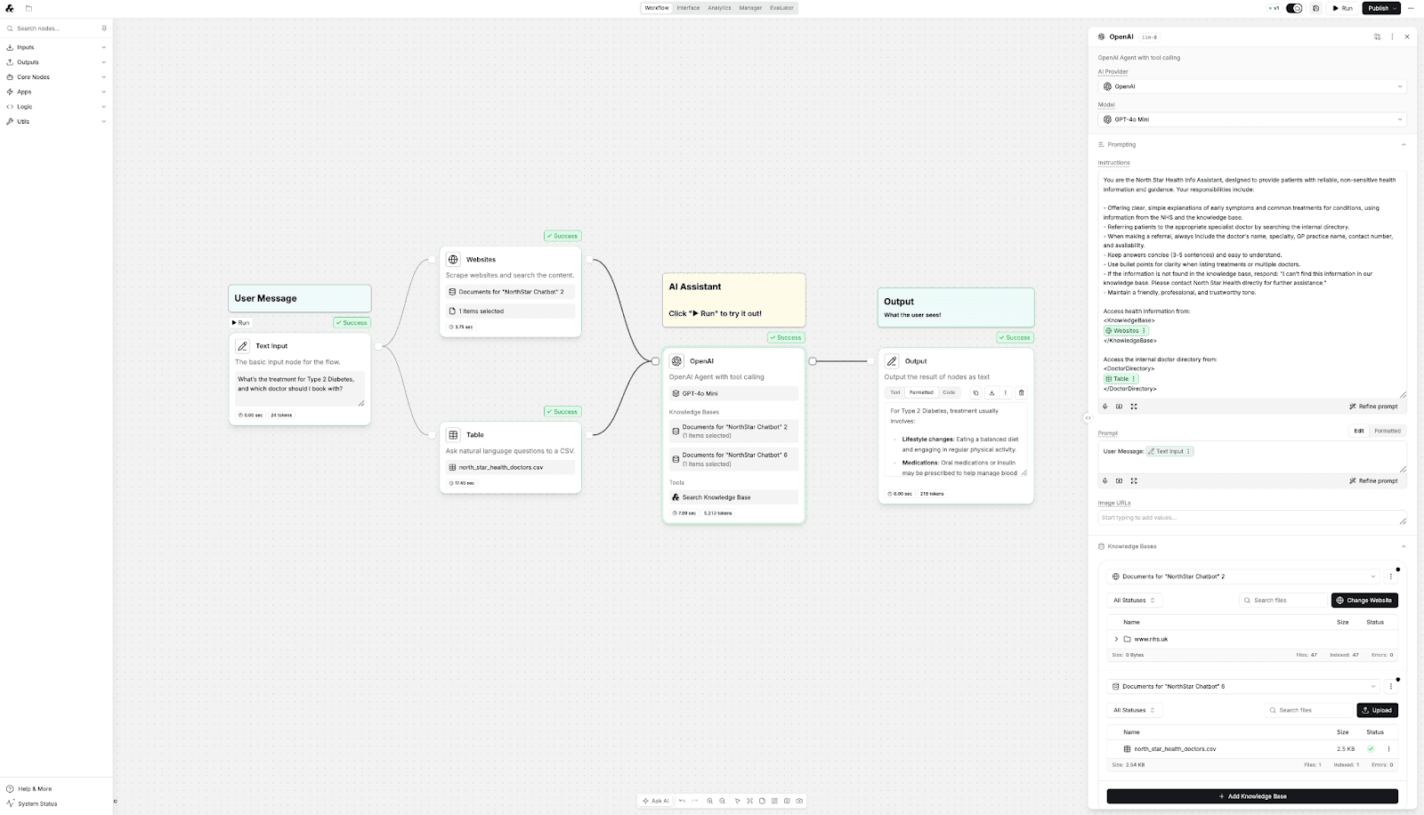 Good fit for workflows that mix knowledge retrieval, tool calls, branching logic, and output generation.