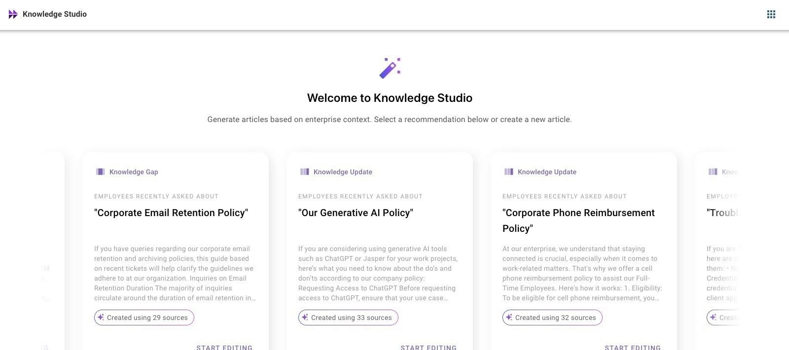 Moveworks grounds answers in internal content tuned for employee support and service resolution.