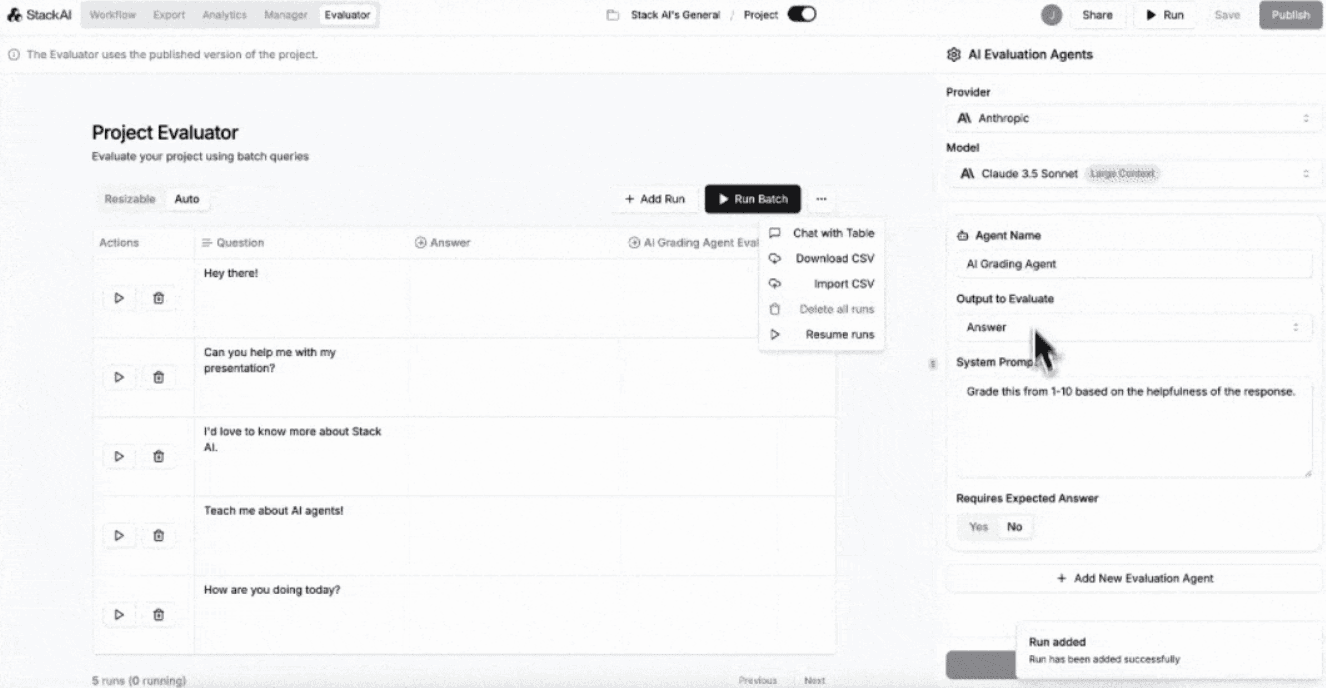 Dedicated Evaluator interface for batch testing prompts and outputs at scale