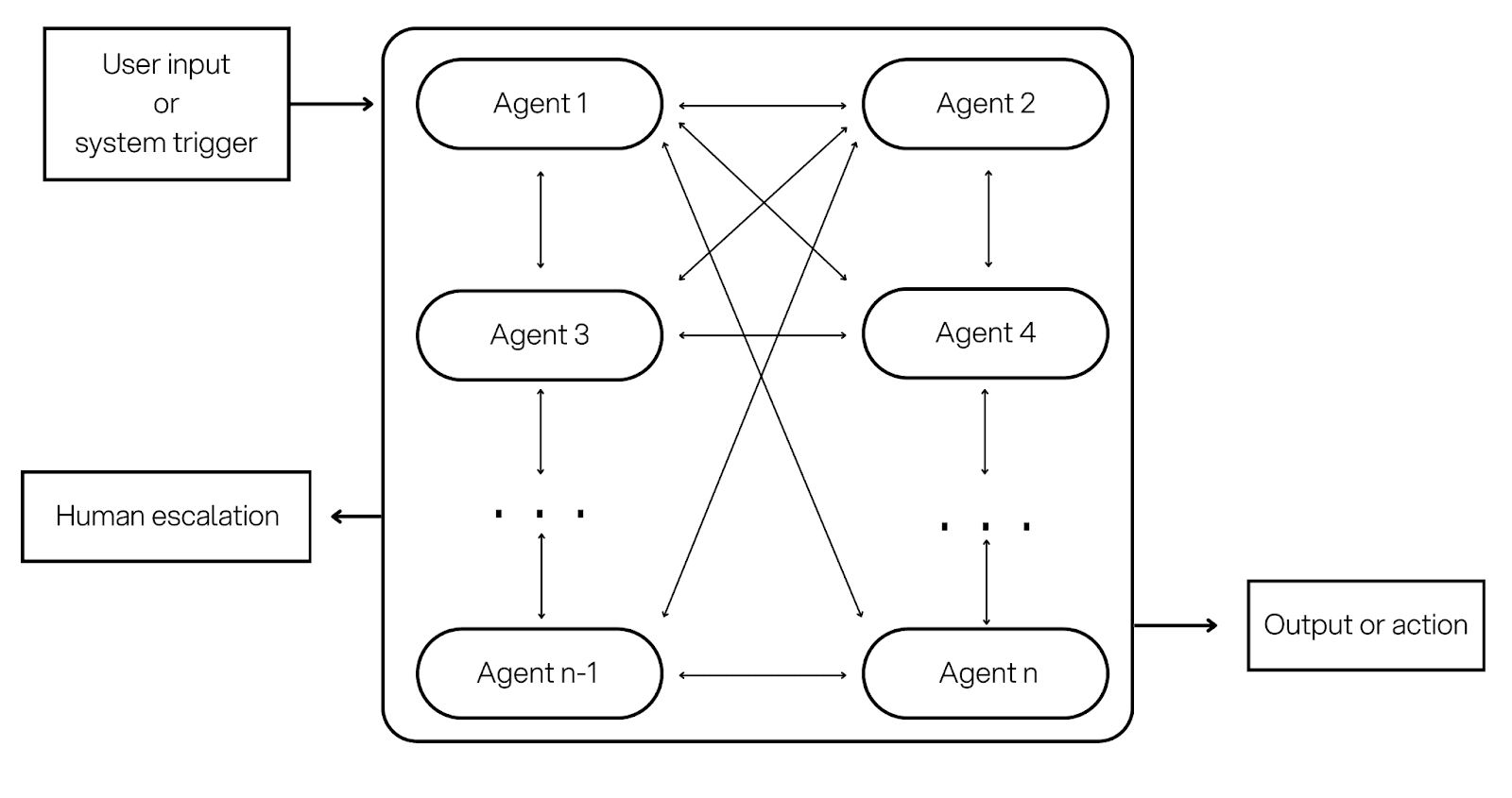 This pattern can produce broad coverage and creative problem solving. It can also be harder to predict and harder to debug, so it needs strong constraints and tracing.