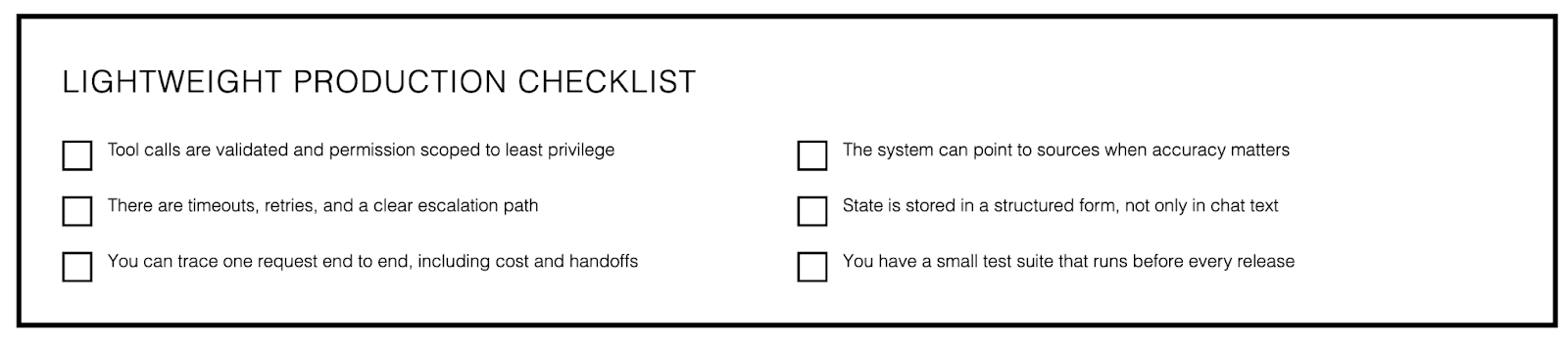 A lightweight production checklist
